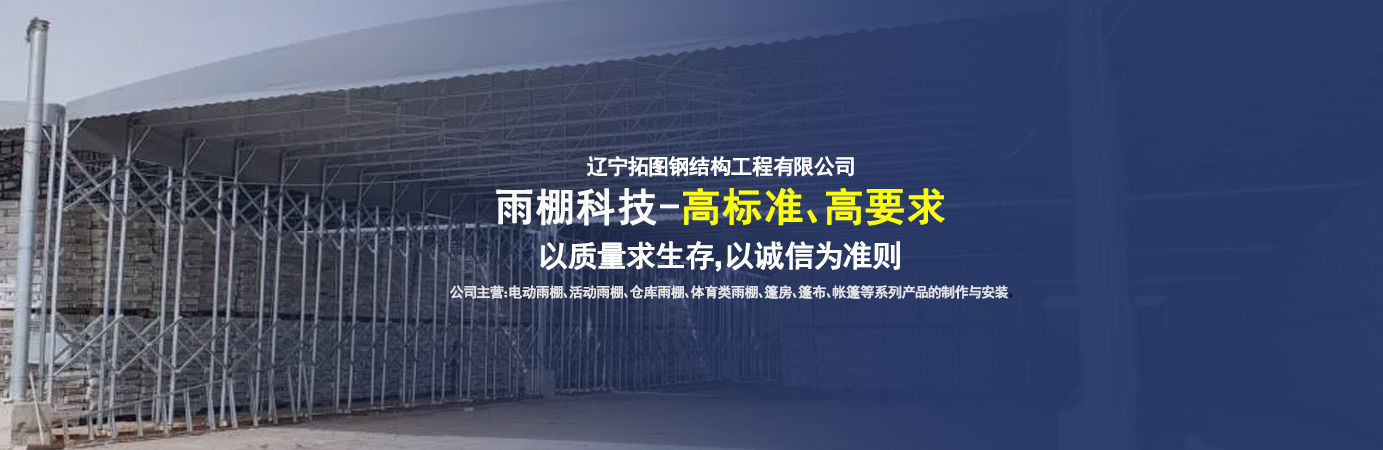 遼寧拓圖鋼結構工程有限公司是一家專業從事推拉篷設計、制作、安裝、使用、維修的綜合性公司。公司主營:電動雨棚、活動雨棚、倉庫雨棚、體育類雨棚、篷房、篷布、帳篷等系列產品的制作與安裝。 遼寧拓圖鋼結構工程有限公司堅持以市場為導向,以科技創新為動力,以質量求生存,以誠信為準則,倡導求實、進取、創新的企業精神?!翱茖W的管理、嚴謹的設計、 的制作安裝、嚴格的質量檢測、良好的后期服務成就企業的信譽,為您提供優質服務?! ?nbsp; 遼寧拓圖鋼結構工程有限公司傾力于開發應用三維空間結構與新材料的結合,將廣告藝術視覺表現形式與張力膜材科學的結合,推出多彩推拉蓬,依靠先進的科學技術,將推拉蓬建筑表現形式無限延伸,立志走在建筑科學的前沿,引導建筑時尚潮流,我們的目標是使推拉蓬建筑在中國發展壯大?! ?nbsp; 遼寧拓圖鋼結構工程有限公司憑著極強的事業熱情和豐富的專業經驗以“勤勉進取、銳意創新、至誠至信”的精神使公司得到迅速健康發展,業務范圍遍及全國。科學的管理、嚴謹的設計、高標準的制作安裝流程,嚴格把控產品質量,熱誠的售后服務是企業競爭力的源泉。 遼寧拓圖鋼結構工程有限公司人愿以最誠摯的態度,歡迎廣大客戶的蒞臨與溝通!愿為市場提供優...